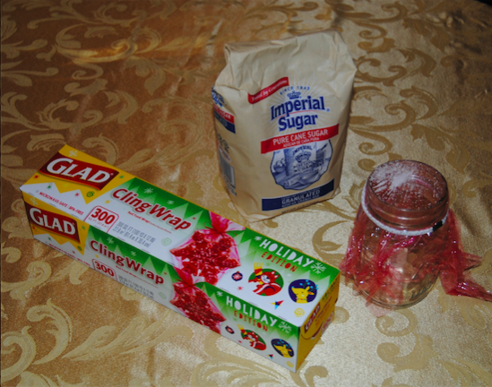 - Place a piece of plastic wrap over the top of an empty jar and pull it tight.